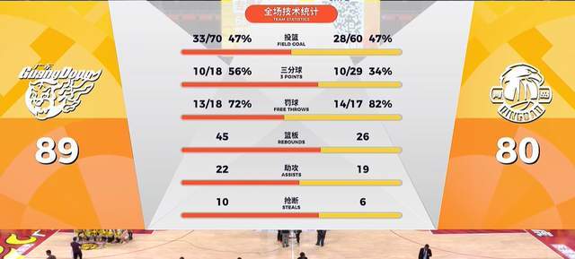 从数据来看,广东男篮打得更加出色,投篮命中率高达47%,而青岛男篮也是47%,但是在外线层面,广东男篮18投10中,命中率56%,而青岛队外线哑火,29投10中,命中率34%。而在篮板层面,广东男篮更是展现出压倒性优势,45-26。